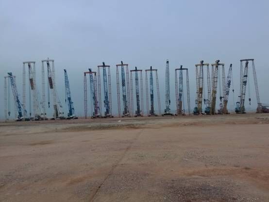 本工程施工期間共投入32臺強(qiáng)夯機(jī)、ZL50F型裝載機(jī)8臺對、4臺SD22推土機(jī)。
