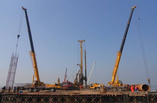 開工日期:2013年8月26日,竣工日期:2014年6月14日。寧高主橋樁基工程,施工合同任務(wù)為216-219號四個主墩,樁徑為1.8m、2.0m兩種,有效樁長為50m-73m,設(shè)計孔深62m-89m的鉆孔灌注樁共計78根,合同工作量13762m³。第二個施工合同任務(wù)為引橋樁基直徑1m的樁160根,有效樁長24-40m,直徑1.25m的樁31根,有效樁長27-35m,直徑1.6m的樁27根,有效樁長43-45m,直徑1.8m的樁33根,有效樁長30-45m。