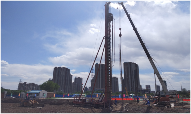 該工程自2016年3月23日開(kāi)工至2016年8月11日完成全部工作內(nèi)容。其中包括φ0.5mCFG樁1297根;φ0.6m混凝土灌注樁1296根;土方開(kāi)挖19352.05m³。