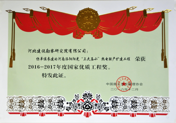 近日,由中國施工企業(yè)管理協(xié)會組織的2016-2017年度第一批國家優(yōu)質(zhì)工程獎評審會在北京隆重召開。國家工程建設質(zhì)量獎評審組聽取了2016-2017年度第一批國家優(yōu)質(zhì)工程獎評審工作報告和專家組長對參評項目復查情況的匯報,對參評項目進行了綜合評議、質(zhì)詢答辯和記名投票,確定了2016-2017年度第一批國家優(yōu)質(zhì)工程獎候選項目。我公司參建的新疆華電喀什熱電有限責任公司的2X350MW熱電聯(lián)產(chǎn)工程、河南洛陽陽光“上大壓小”熱電聯(lián)產(chǎn)熱電工程最終通過評審榮獲了國家優(yōu)質(zhì)工程獎。