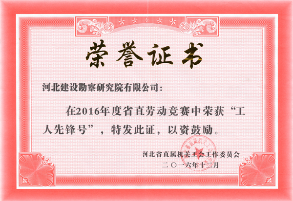 根據(jù)河北省直屬機(jī)關(guān)工會工作委員會2月27日發(fā)布的冀直工【2017】4號文件《河北省直屬機(jī)關(guān)工會工委關(guān)于2016年度勞動競賽情況的通報(bào)》,對在2016年度勞動競賽活動中成績突出的單位和個(gè)人進(jìn)行表彰。其中,包括我公司在內(nèi)的48個(gè)單位被評為省直“工人先鋒號”。