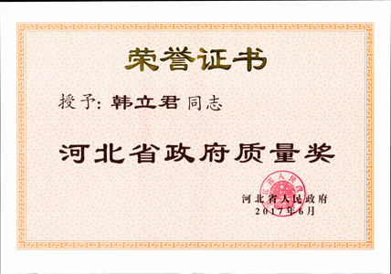 韓立君董事長榮獲河北省政府質(zhì)量獎(jiǎng)個(gè)人獎(jiǎng)、公司獲組織提名獎(jiǎng)