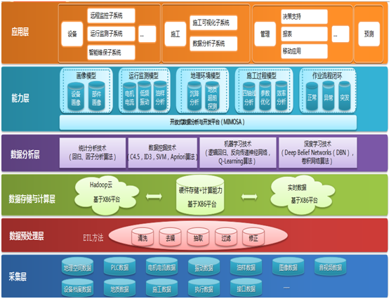 本項(xiàng)目在研究盾構(gòu)的運(yùn)行狀態(tài)進(jìn)行監(jiān)控和管理的基礎(chǔ)上,將盾構(gòu)運(yùn)行狀態(tài)參數(shù)及工況數(shù)據(jù),通過采集終端經(jīng)PLC、光纖、路由器、VPN隧道傳輸至遠(yuǎn)程數(shù)據(jù)中心,數(shù)據(jù)存儲使用工業(yè)級實(shí)時(shí)數(shù)據(jù)庫,采集頻率可達(dá)毫秒級。業(yè)務(wù)基礎(chǔ)—對各類盾構(gòu)機(jī)(機(jī)、電、液)深入分析,提供盾構(gòu)軌跡、管片軌跡、單環(huán)分析、掘進(jìn)效率等統(tǒng)計(jì)分析功能,以便管理決策層把握各項(xiàng)目施工情況。構(gòu)建盾構(gòu)/TBM施工與健康管理平臺,實(shí)現(xiàn)以下四個(gè)功能:1、盾構(gòu)遠(yuǎn)程監(jiān)控,2、智能維保,3、盾構(gòu)施工輔助巡航,4、組態(tài)化模塊定制。進(jìn)行盾構(gòu)施工大數(shù)據(jù)相關(guān)性、關(guān)聯(lián)分析、影響因素分析,關(guān)鍵子系統(tǒng)健康管理和故障診斷,基于大數(shù)據(jù)的比較、聚類、預(yù)測實(shí)現(xiàn)對盾構(gòu)施工進(jìn)行遠(yuǎn)程管理。