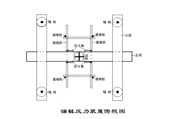 錨樁反力裝置就是將被測樁周圍對稱的幾根錨樁用錨筋與反力架連接起來,依靠樁頂?shù)那Ы镯攲⒎戳茼斊?,由被連接的錨樁提供反力,提供反力的大小由錨樁數(shù)量,反力架強度和被連接錨樁的抗拔力決定。錨樁反力裝置一般不會受現(xiàn)場條件和加載噸位數(shù)的限制,當條件允許,采用工程樁作錨樁是最經(jīng)濟的。
