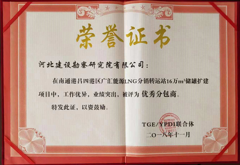 我公司獲廣匯能源LNG項(xiàng)目“優(yōu)秀承包商”證書(shū)