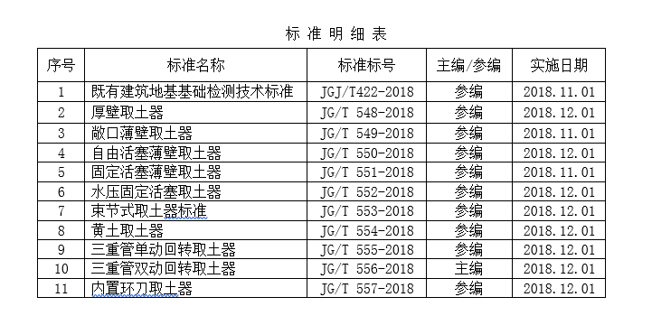 近日,國家住房和城鄉(xiāng)建設(shè)部發(fā)布公告,批準(zhǔn)我公司主編的建筑工業(yè)行業(yè)產(chǎn)品標(biāo)準(zhǔn)《三重管雙動回轉(zhuǎn)取土器 JG∕T 549-2018》、參編的《既有建筑地基基礎(chǔ)檢測技術(shù)標(biāo)準(zhǔn)JGJ/T422-2018》等共十一項標(biāo)準(zhǔn),正式發(fā)布實施。