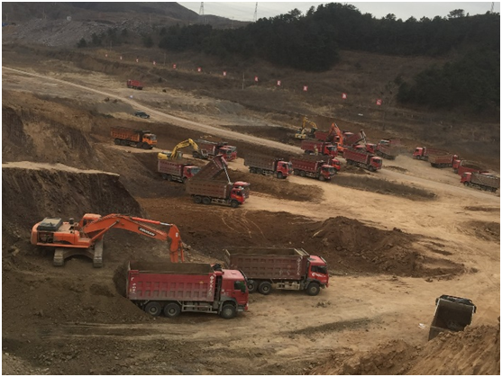 由于本工程所處地質條件的特殊性,施工過程中爆破工作量很大,同時由于山路陡峭崎嶇,給排土場道路的施工帶來了很大難度。施工過程中,我單位秉持精心安排、用心服務的管理理念,開挖過程中合理劃分施工區(qū)域,根據不同地塊的石方開挖高度采取合理的鉆爆施工方案,既避免了交叉作業(yè)帶來的安全問題同時也提高了施工效率。