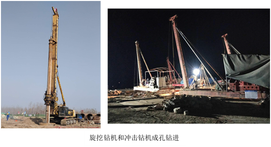 本工程主要包括從黃河左岸大堤位置起,大橋主橋17#、18#和19#墩三個墩的樁基工程,主要工作內(nèi)容為:成孔、水下混凝土灌注和配合樁基檢測。自2018年11月22日開工,2019年5月19日全面竣工,共計179天,投入旋挖鉆機TR360D 1臺,沖擊鉆機6臺,空壓機1臺,泥漿處理器1臺。施工完成后,經(jīng)相關單位檢測和驗:本工程鉆孔成孔深度、成孔直徑符合設計要求;入巖深度和巖石強度符合設計要求;樁基超聲波檢測合格率100%,優(yōu)良率100%。