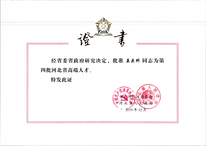公司總工程師聶慶科列入河北省高端人才第四批支持計劃名單