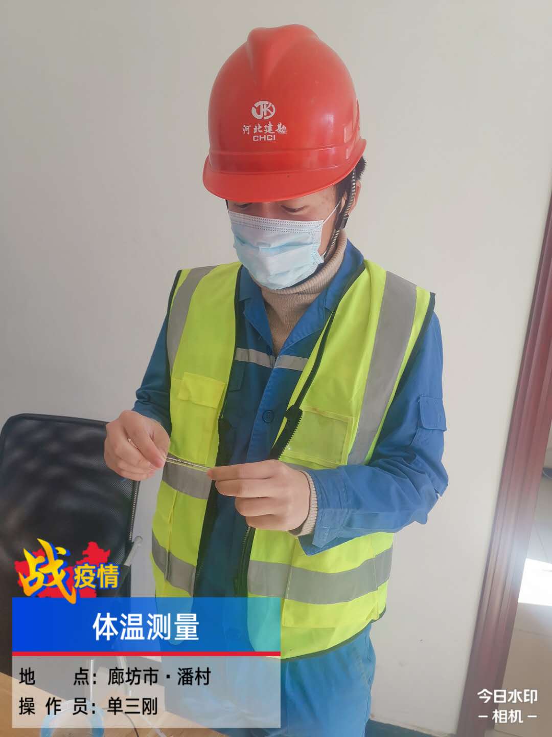針對在崗人員值班人員,登記造冊。每日(每人每日不少于2次)開展人員體溫量測工作,并做好記錄,建立體溫量測表,每天19:00前將記錄表上傳至微信群中。發(fā)現(xiàn)異常情況,及時(shí)匯報(bào)給上級部門,積極幫助項(xiàng)目部采購防護(hù)物資,對值班人員因疫情不能換班回家進(jìn)行了補(bǔ)貼。