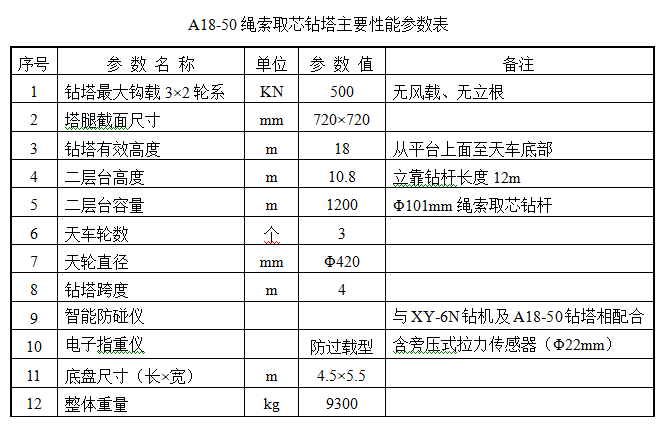 1、A18-50繩索取芯鉆塔設(shè)計、制造依據(jù)“先進、可靠、安全、經(jīng)濟、實用”的原則,可滿足繩索取芯鉆井工藝要求,符合施工現(xiàn)場HSE規(guī)范。
