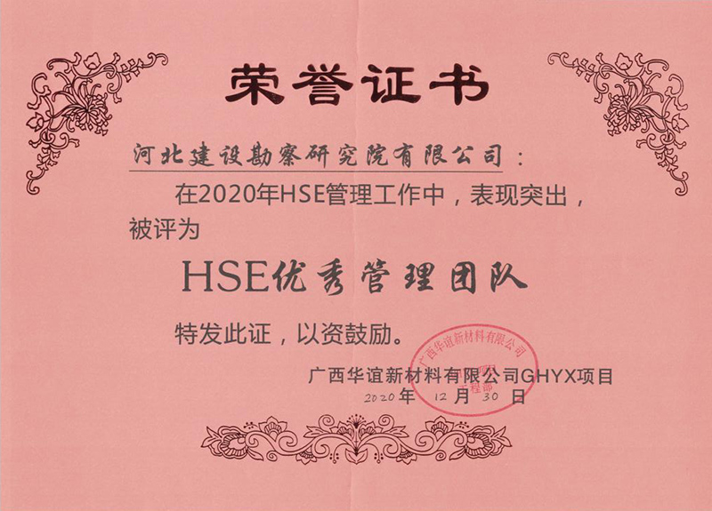 為此,廣西華誼新材料有限公司GHYX項(xiàng)目工程部特發(fā)來表揚(yáng)信,并授予我項(xiàng)目管理團(tuán)隊(duì)“質(zhì)量優(yōu)秀團(tuán)隊(duì)”、“HSE優(yōu)秀團(tuán)隊(duì)”榮譽(yù)稱號(hào),對(duì)四名先進(jìn)個(gè)人予以嘉獎(jiǎng)。