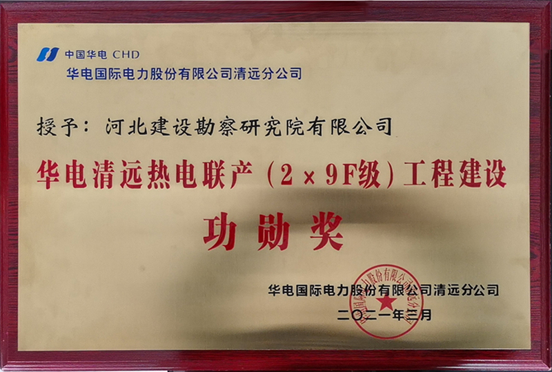 我公司榮獲華電清遠(yuǎn)熱電聯(lián)產(chǎn)(2×9F級)工程建設(shè)功勛獎(jiǎng)