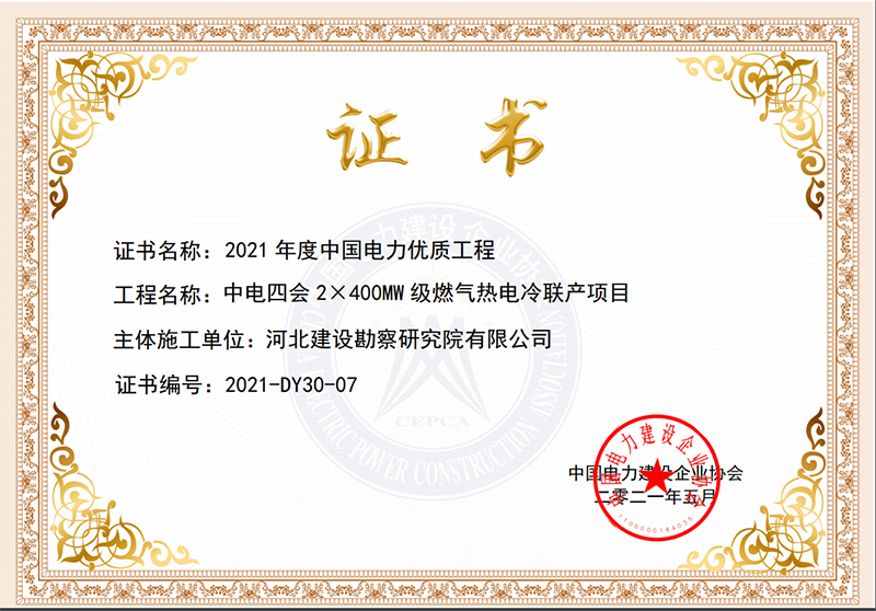 近日,中國電力建設(shè)企業(yè)協(xié)會(huì)公布了2021年度中國電力優(yōu)質(zhì)工程評審結(jié)果,我公司作為中電四會(huì)2×400MW級燃?xì)鉄犭娎渎?lián)產(chǎn)項(xiàng)目主體施工單位,榮獲2021年度中國電力行業(yè)優(yōu)質(zhì)工程獎(jiǎng)。