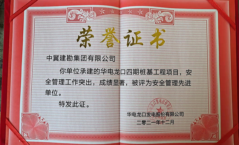 華電龍口四期樁基工程項(xiàng)目安全工作管理突出,被頒發(fā)“安全管理先進(jìn)單位”榮譽(yù)證書(shū),張金根被評(píng)為“安全管理先進(jìn)個(gè)人”榮譽(yù)稱(chēng)號(hào)。