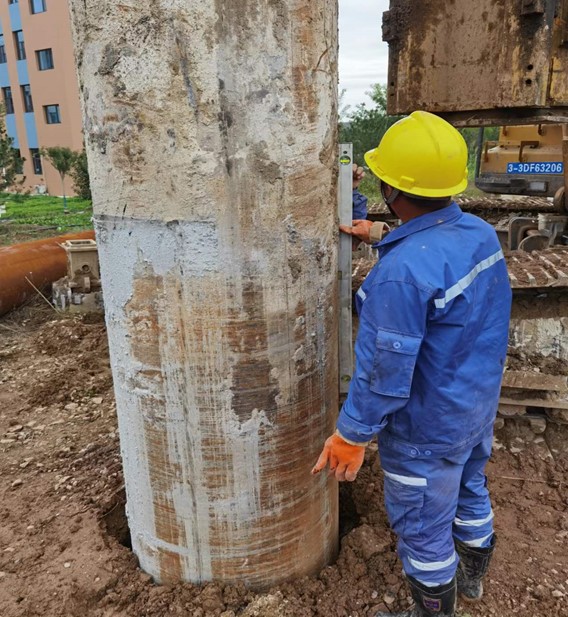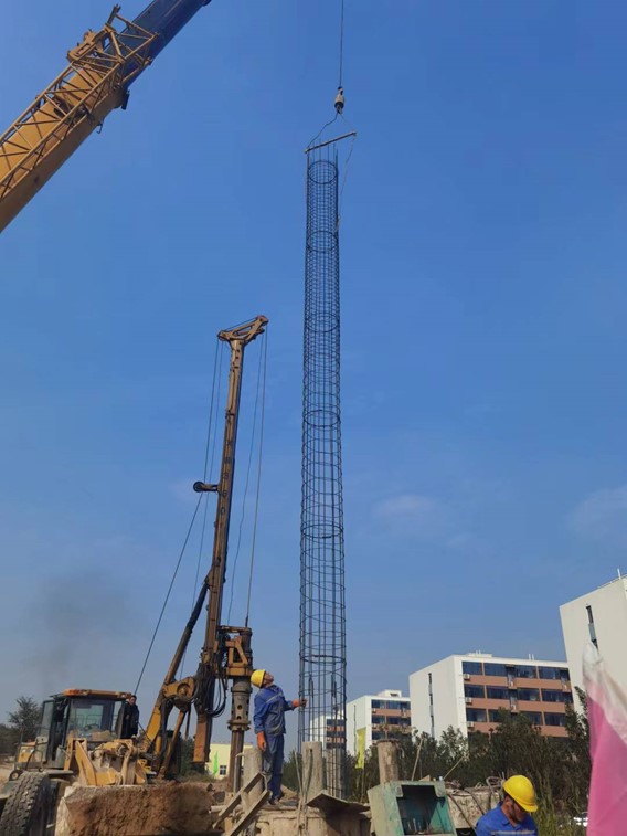 本項目位于河北邯鄲永年縣,受河北永洋特鋼集團(tuán)有限公司委托,我公司承擔(dān)本項目樁基施工。基礎(chǔ)采用混凝土灌注樁,工程內(nèi)容為全套管旋挖機(jī)械成孔、清運(yùn)余土(渣土)、鋼筋籠制作及安放、混凝土澆筑、鑿樁頭、清運(yùn)及場地平整。工作量為樁徑800mm混凝土灌注樁174根。