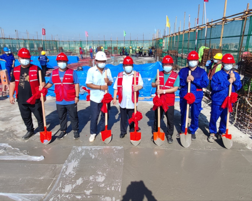 海南辦公樓占地面積15畝,地下二層,地上12層,總建筑面積47527平方米。工程自2021年9月13日現(xiàn)場舉辦開工儀式以來,經(jīng)過11個月的合力攻堅,克服高溫、臺風、疫情等重重難關,如期實現(xiàn)了一個個關鍵節(jié)點:2021年10月25日第一根基礎工程樁混凝土灌注順利完成;2021年12月4日開始8萬方土方開挖的任務;2022年1月29日,實現(xiàn)了基礎筏板的澆筑;2022年4月10日,完成了地下二層車庫施工,主體如期“沖”出正負零;2022年6月24日,東、西配樓主體按計劃日期封頂。如今項目迎來了主體封頂?shù)睦锍瘫?,為后期工程樹立了標桿!