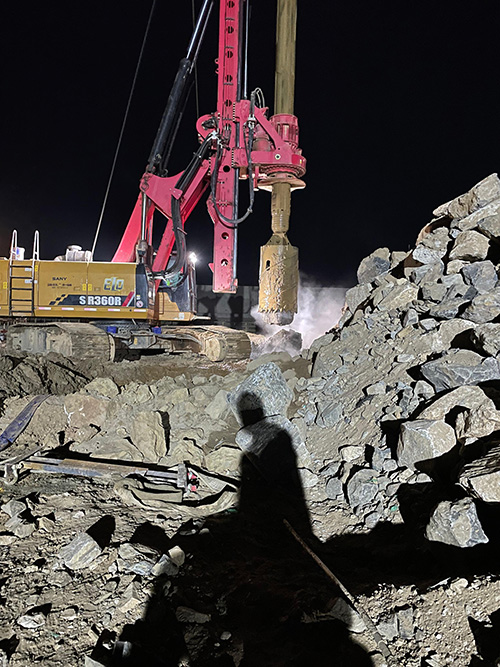 本工程自2022年01月05日開工,2022年03月09日完工。完工后,經(jīng)檢測本工程樁基合格率100%,對施工完成的全部樁基按照低應(yīng)變檢測100%,檢測結(jié)果均為一類樁。聲波檢測1根,結(jié)果為Ⅰ類樁。碎石樁及樁間土檢測6根,豎向抗壓及豎向抗拔檢測各3根,水平靜載檢測6根,各項檢測結(jié)果均滿足設(shè)計要求。