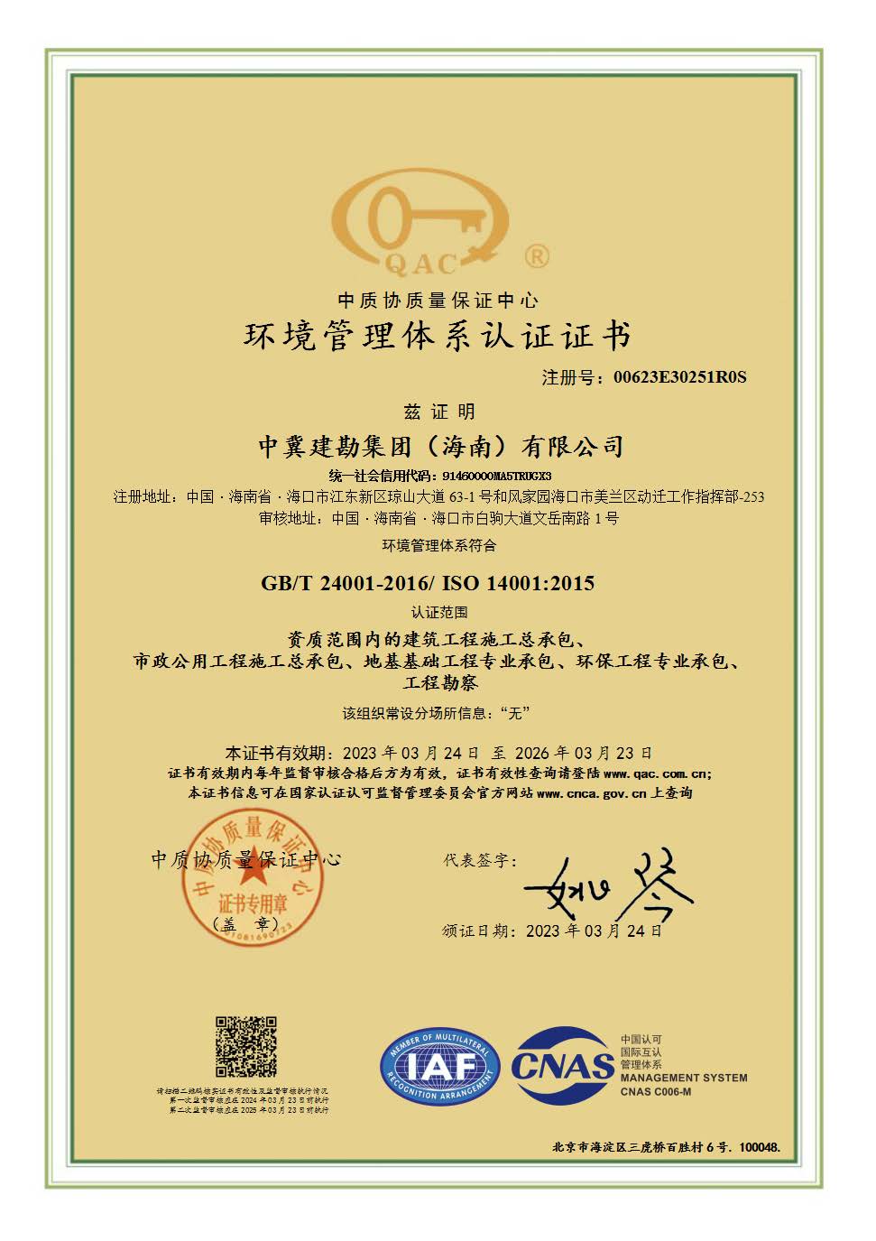 2023年3月13日至18日,經(jīng)認證機構(gòu)現(xiàn)場審核,中冀建勘集團(海南)有限公司順利通過了綜合管理體系的認證,并于3月24日取得了中質(zhì)協(xié)質(zhì)量保證中心頒發(fā)的綜合管理體系認證證書。