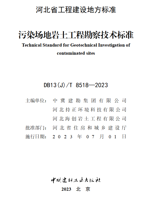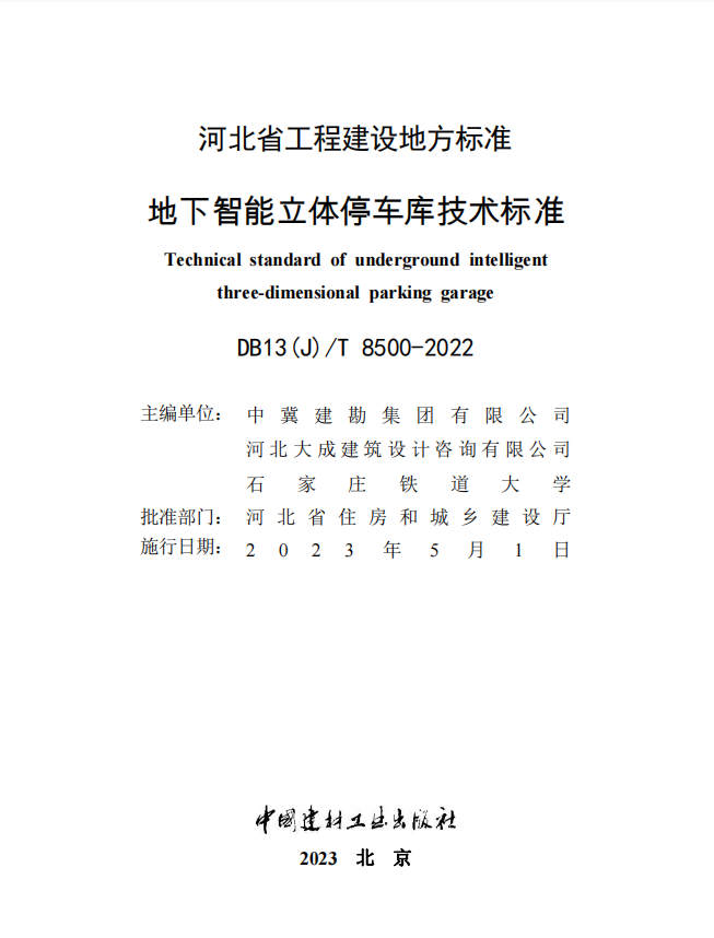 近日,我公司主編的河北省工程建設地方標準《地下智能立體停車庫技術標準》(DB13(J)/T 8500-2022)、《污染場地巖土工程勘察技術標準》(DB13(J)/T 8518-2023)由河北省住房和城鄉(xiāng)建設廳正式發(fā)布,并印刷出版發(fā)行,分別將自2023年5月1日和7月1日起實施。