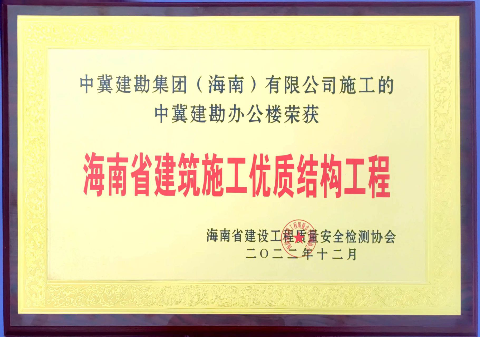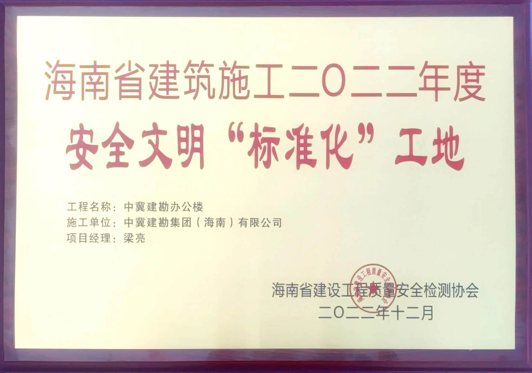 中冀建勘辦公樓榮獲“海南省建筑施工優(yōu)質(zhì)結(jié)構(gòu)工程”及海南省建筑施工二0二二年度安全文明“標準化”工地榮譽稱號