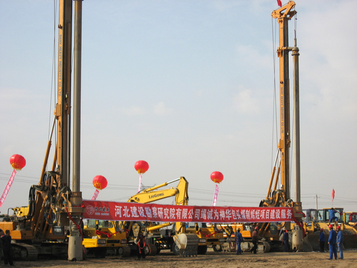 神華包頭煤制烯烴項目工業(yè)廠址位于包頭市九原區(qū)哈林格爾鎮(zhèn)西南,由包頭煤化工有限公司籌建,一期建設規(guī)模為180萬噸/年甲醇及相應的公用工程、輔助生產(chǎn)設施。樁基工程自2007年9月23日開工,至2008年5月16日竣工,采用后壓漿旋挖鉆孔灌注樁,設計樁徑為Φ800mm,樁長為14.1~35.2m。共施工基樁3294根,設計混凝土方量為46989.9m3,實際灌注方量52128.1m3,樁身砼強度等級為C30、C35兩種。