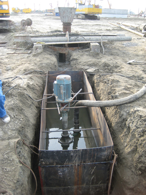 本工程自2008年8月26日開工,至2008年12月30日竣工,采用三岔雙向擠擴(kuò)后壓漿鉆孔灌注樁,砼等級C40,灌注樁樁徑1.4m,2b型地下樁長為58.9m,樁數(shù)為16根;1a、1b、2a、2c型地下樁長為55.3m,樁數(shù)為344根;地上樁長均為1.8m,每根樁三個(gè)盤徑2.4m的承力盤,共360根樁,并完成了樁端后壓漿、鑿樁頭及地面接樁工作;振動沉管碎石樁樁徑為0.35m,地下樁長為20m,共完成2181根,碎石墊層12897 m3。