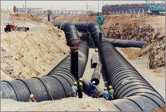 整個(gè)廠區(qū)降水面積880000 m2,降水深度7-12m,布置降水井105眼。工程設(shè)計(jì)方案采用管井降水,以截流為主,輔以疏導(dǎo)和局部圍降的方法。獲國(guó)家優(yōu)秀工程勘察銅獎(jiǎng)。