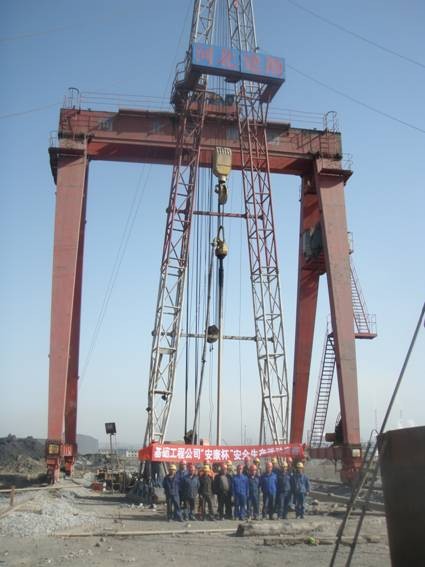 本工程成孔垂直度要求高,要求控制在1.0‰以內(nèi),投料管重量大,總重達(dá)到356t,施工難度大;經(jīng)過精心組織,質(zhì)量合格,一次交付。