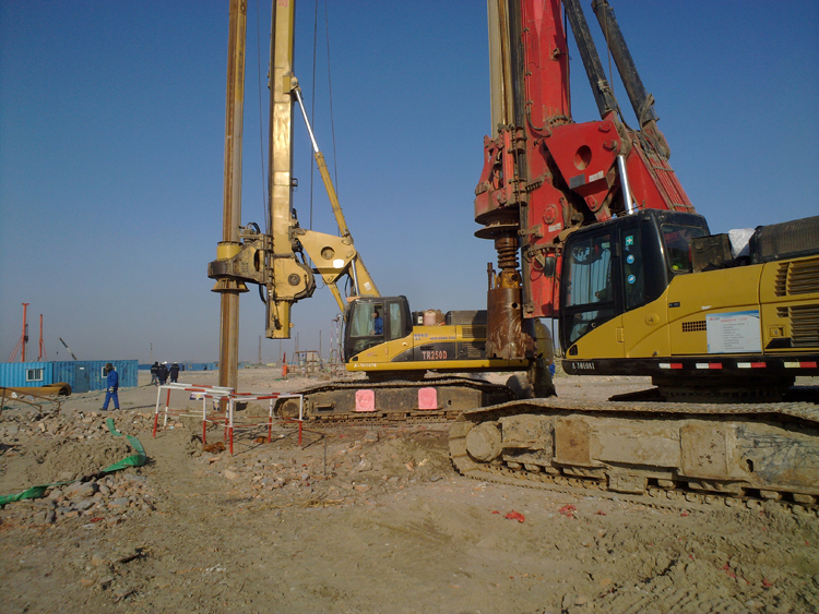 本工程共投入4臺旋挖鉆機、1套攪拌站、5臺50裝載機、4臺25噸吊車和4臺振沖器及其它配套施工機械設(shè)備,灌注樁共完成理論方量19169.7m3、振沖碎石樁理論方量13266m3。本工程試樁于2012年10月11日開始施工,12個日歷天完成。工程樁和振沖碎石樁于2013年1月2日正式開工,3月25日全部完成施工任務(wù)。